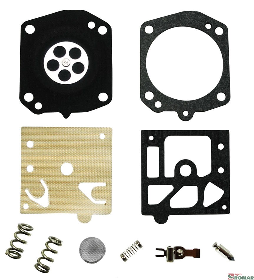 Zestaw zawiera: membranę pompującą, membranę sterującą, uszczelki, zaworek iglicowy, dźwignię sterującą, sprężynę zaworka, sitko dopływu paliwa, sprężyny wkrętów regulacji składu mieszanki.