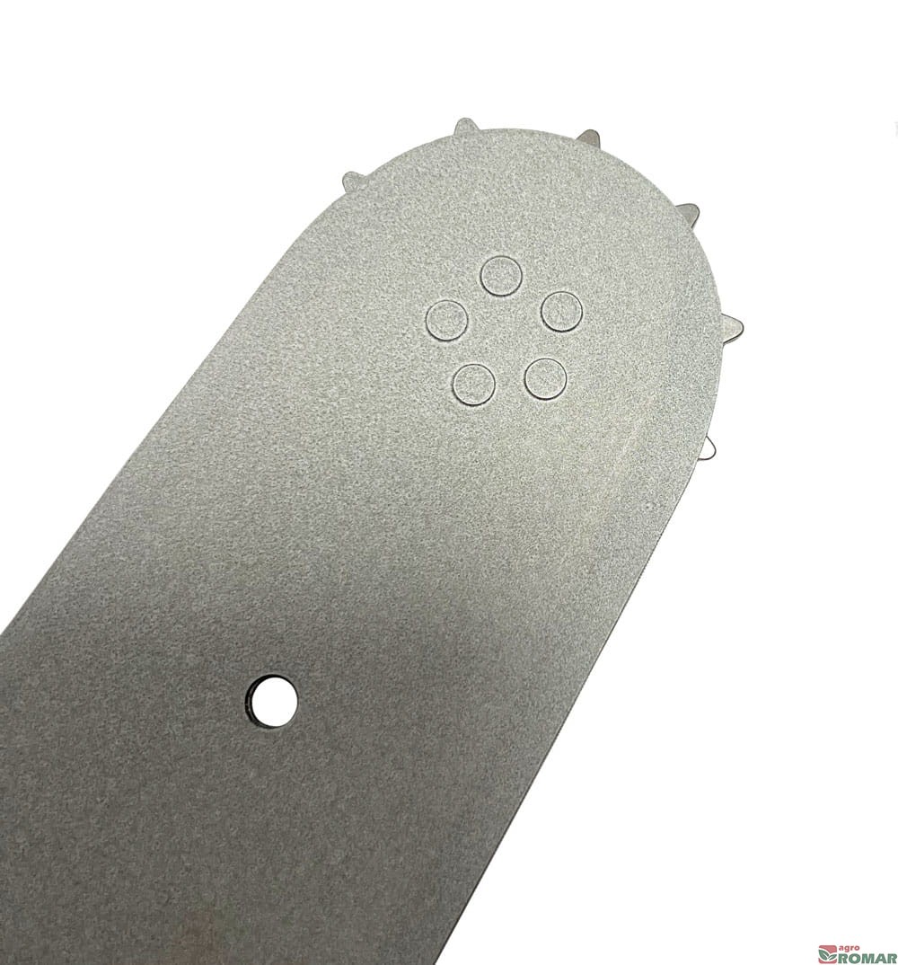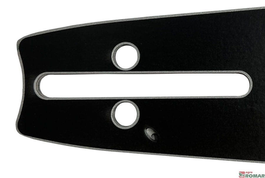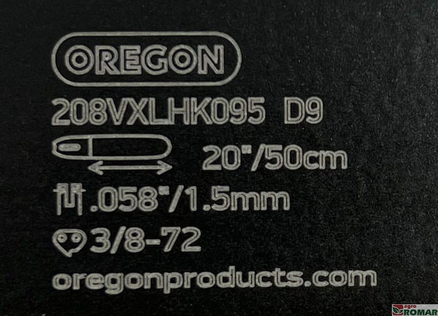 Wypalone laserowo oznaczenia prowadnicy ułatwiają jej zidentyfikowanie. Nawet po długotrwałym użytkowaniu i zdarciu wierzchniej warstwy farby pozostają łatwe do odczytania. W tabelce znajdziesz informacje o szerokości rowka, podziałce łańcucha, ilości ogniw łańcucha, oraz numerze katalogowym prowadnicy.