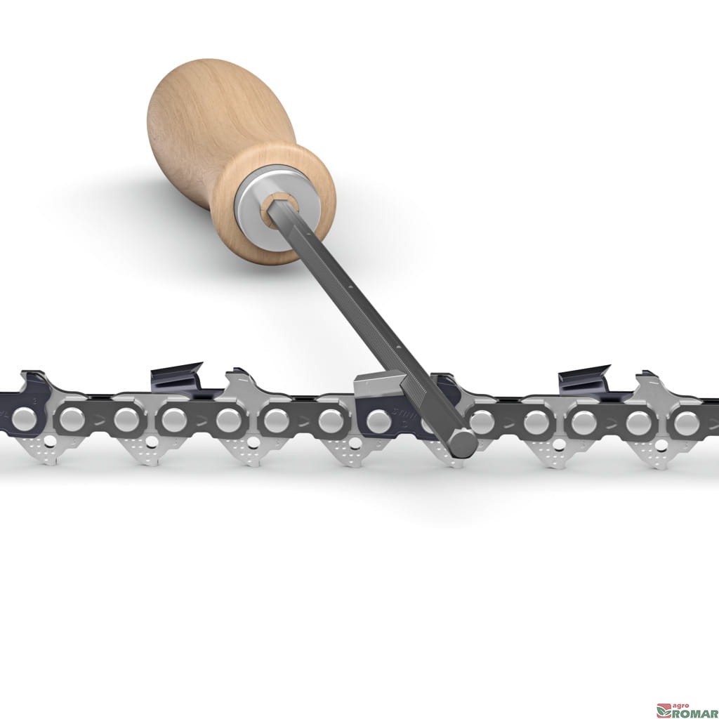 Ostrzenie łańcucha HEXA za pomocą dedykowanego pilnika HEXA zostało ułatwione do granic możliwości! Sześciokątny pilnik HEXA posiada gładką podstawę która prowadzi pilnik po zębie tnącym - wyeliminowano ryzyko zbyt głębokiego szlifowania podstawy zęba tnącego oraz wrębu. Górna powierzchnia pilnika posiada odkutą linię, która wskazuje prawidłowy kąt ostrzenia - 25 stopni.