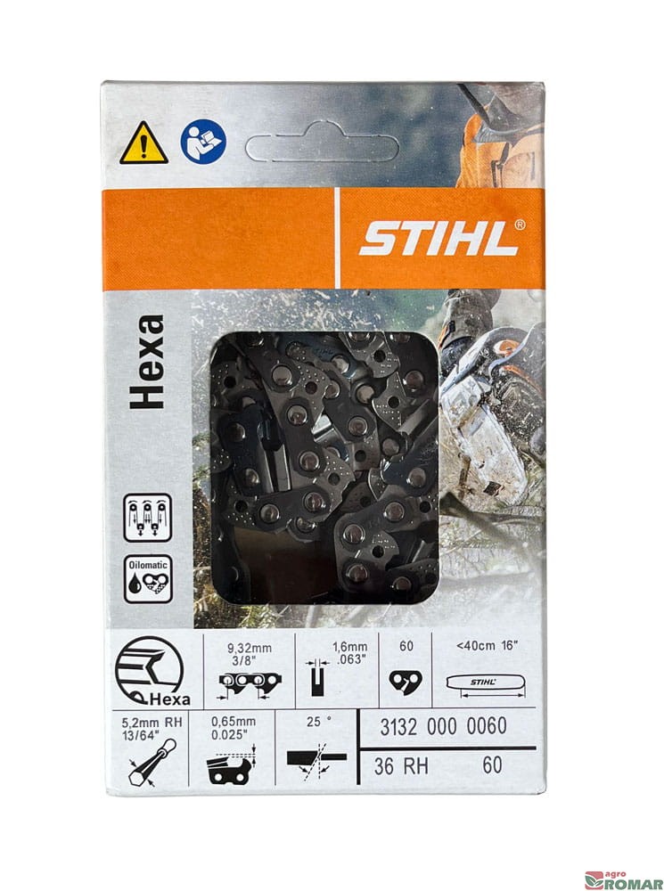 Profesjonalny łańcuch tnący STIHL Rapid HEXA 3/8" o unikatowym kształcie półki tnącej. Pracuj do 15% dłużej na jednym ostrzeniu przy zachowaniu blisko 10% szybszej wydajności cięcia!