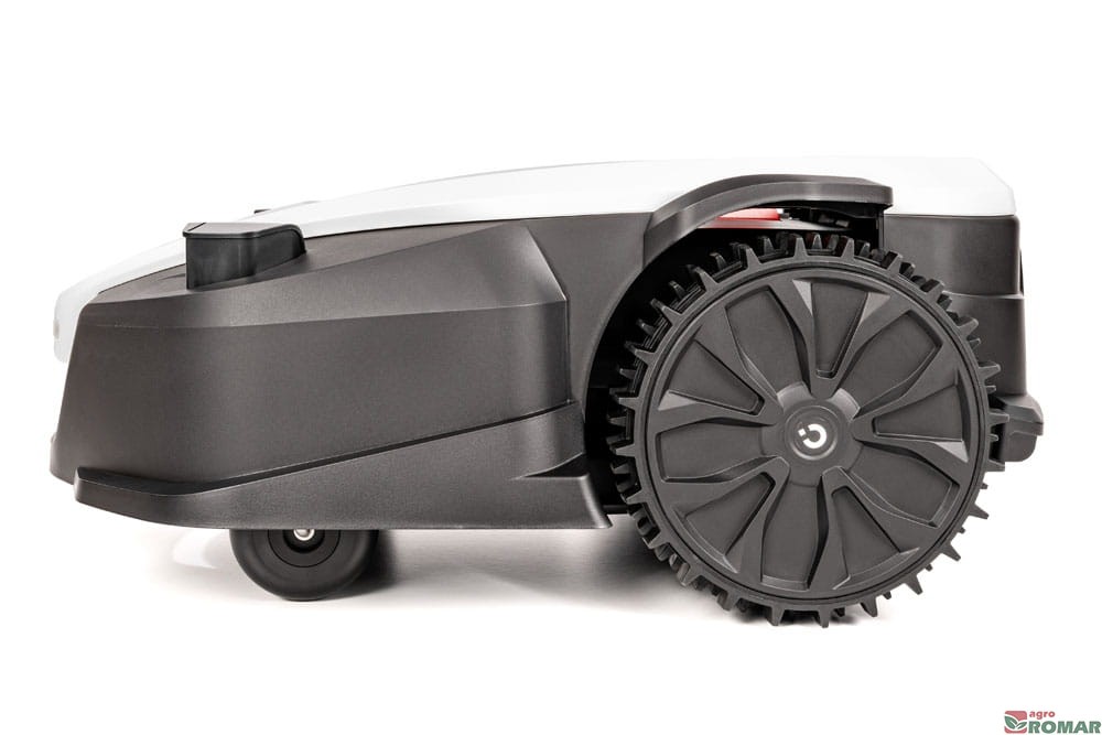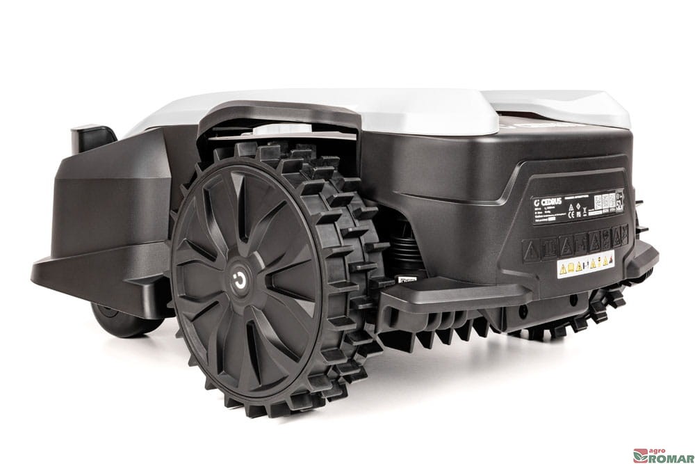 Model Cedrus C-MOW został wyposażony w duże, wytrzymałe koła o specjalnym bieżniku, które zapewniają doskonałą przyczepność na różnych rodzajach nawierzchni. Dzięki temu robot sprawnie porusza się po trawniku, nawet na nierównym terenie i nachyleniach do 35%.