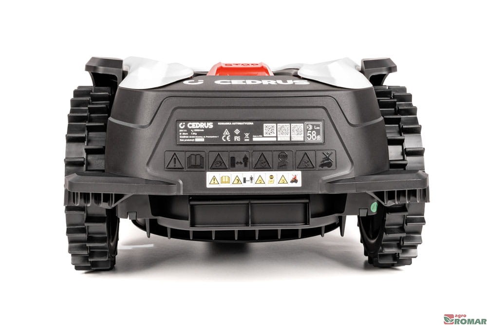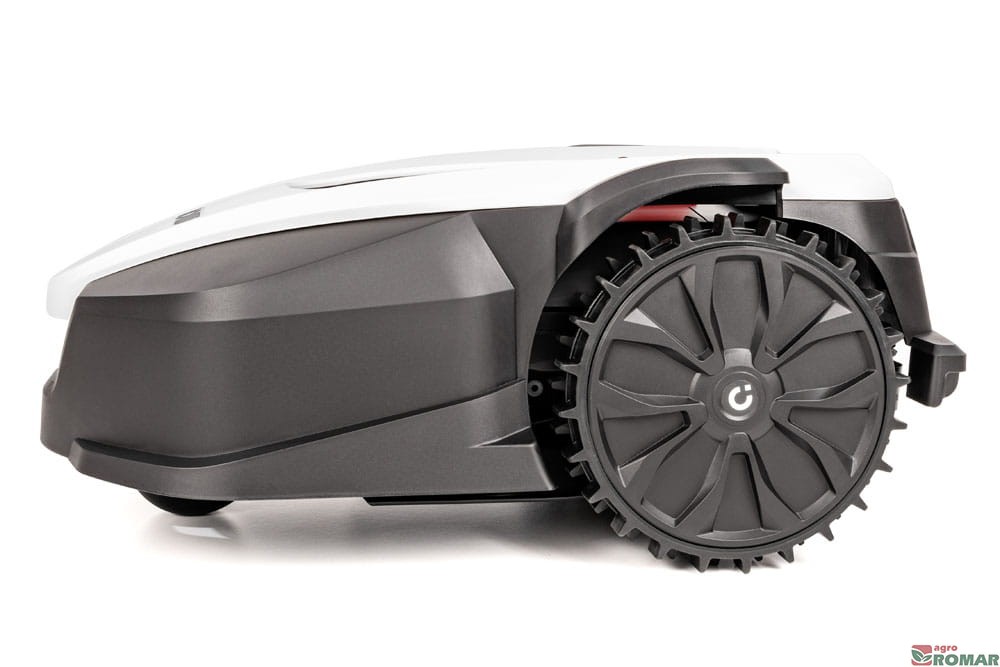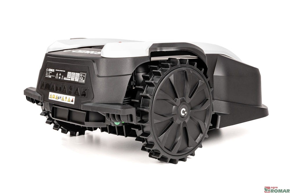 Model Cedrus C-MOW został wyposażony w duże, wytrzymałe koła o specjalnym bieżniku, które zapewniają doskonałą przyczepność na różnych rodzajach nawierzchni. Dzięki temu robot sprawnie porusza się po trawniku, nawet na nierównym terenie i nachyleniach do 35%.