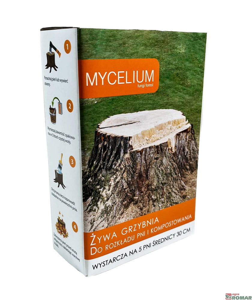 Grzybnia do rozkładu pni i kompostowania 0,6l Mycelium to innowacyjny biologiczny preparat, idealny do usuwania martwych pni drzew oraz kompostowania odpadów organicznych. Preparat bazujący na grzybie Pehiophora gigantea (Żylica olbrzymia), w naturalny sposób wytwarza enzymy rozkładające jedynie martwą tkankę, dzięki czemu nie zagraża sąsiadującym drzewom i innym żywym roślinom.