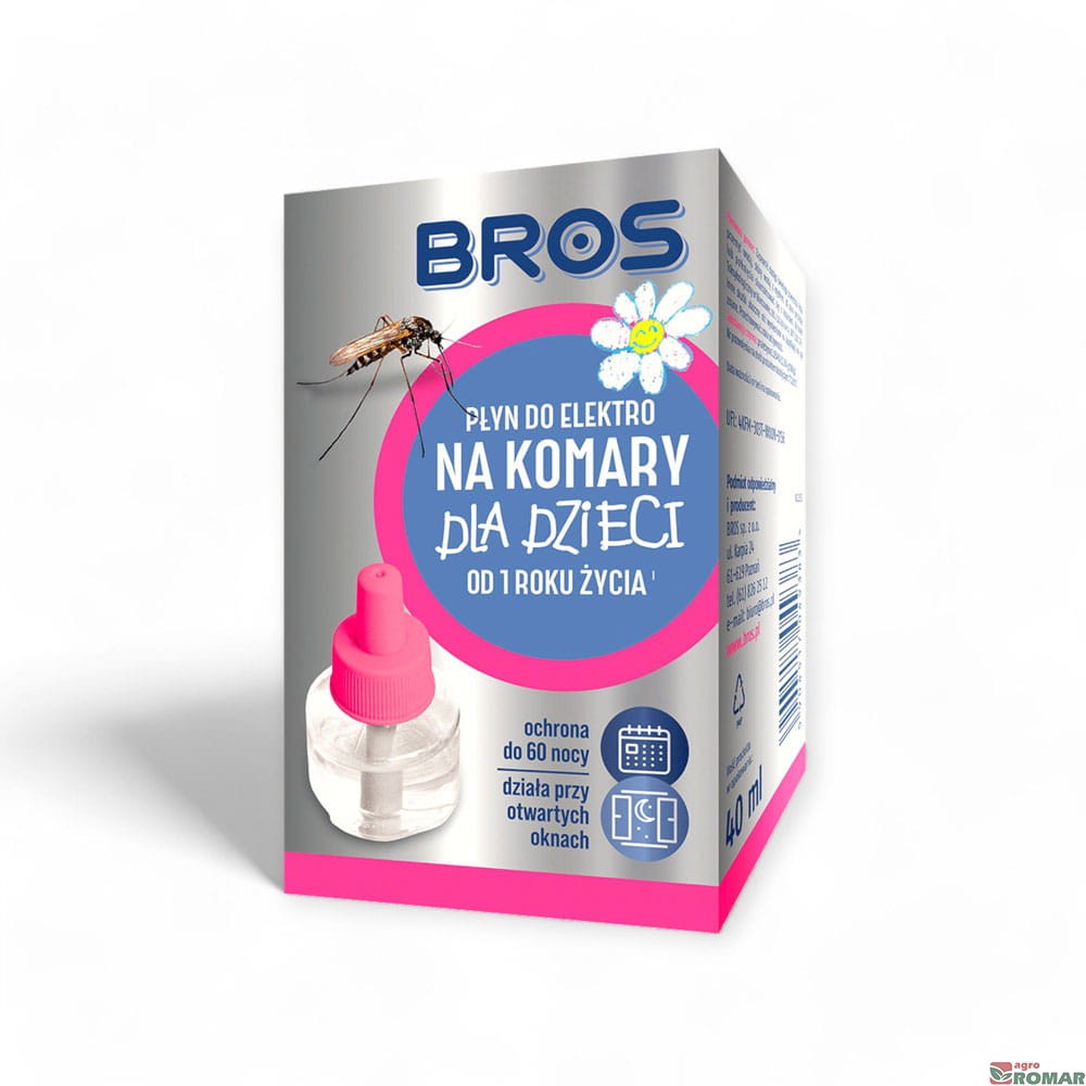 Płyn uzupełniający do elektrofumigatora dla dzieci Bros (40 ml) został opracowany z myślą o skutecznej i długotrwałej ochronie dziecięcych pokoi przed komarami, eliminując te owady bez użycia substancji drażniących.