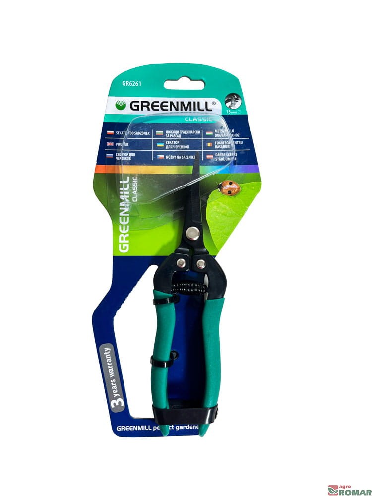 Sekator ogrodowy do sadzonek Greenmill (model GR6261) to niezawodne narzędzie, które spełni oczekiwania nawet najbardziej wymagających ogrodników. Profilowane ostrze sekatora zostało wykonane z wysokogatunkowej hartowanej stali i jest dodatkowo pokryte specjalną powłoką antyadhezyjną, która chroni ostrza przed zabrudzeniem się sokiem z gałązek roślin. Solidny uchwyt z tworzywa antypoślizgowego zapewnia pewny chwyt i komfort użytkowania.
