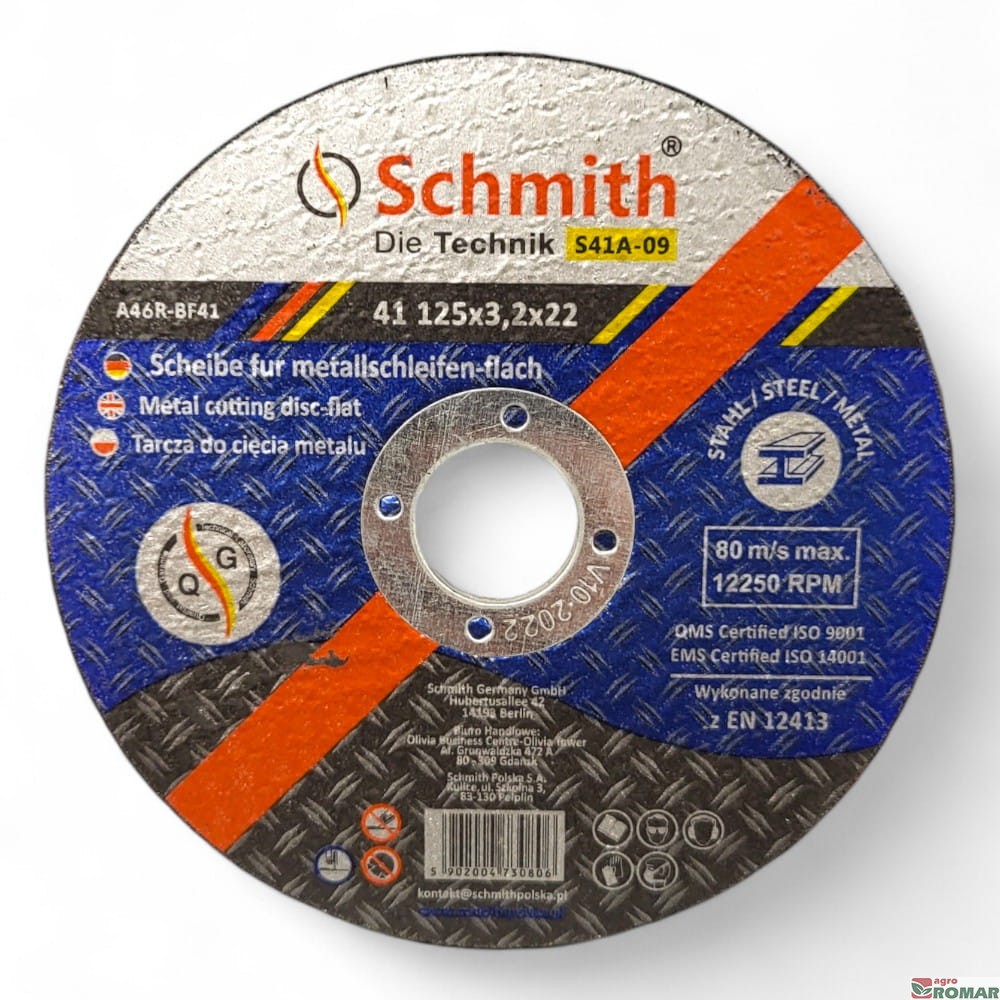 Tarcza do cięcia metalu Schmith 125x3,2 to trwałe i precyzyjne narzędzie przeznaczone do szlifierek kątowych.