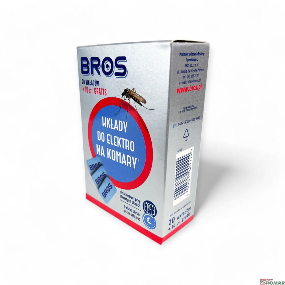 Zestaw wkładów do elektrofumigatora Bros (20 + 10 szt. gratis) to doskonały wybór na letnie wieczory, gdy ochrona przed komarami jest szczególnie potrzebna.