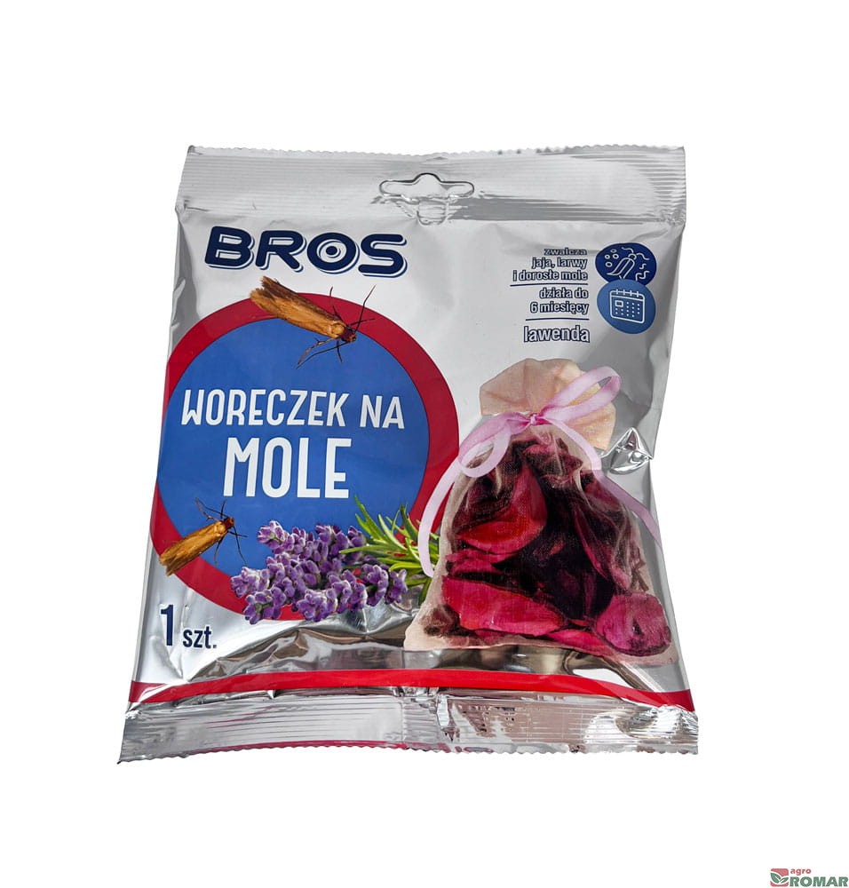Woreczek na mole (lawendowy) Bros to skuteczny sposób na ochronę ubrań przed molami odzieżowymi. Produkt zwalcza zarówno dorosłe osobniki, jak i jaja oraz larwy.