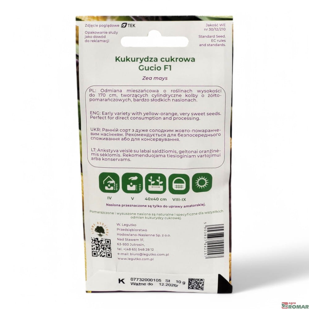 Kukurydza cukrowa Gucio F1 10g, W. Legutko