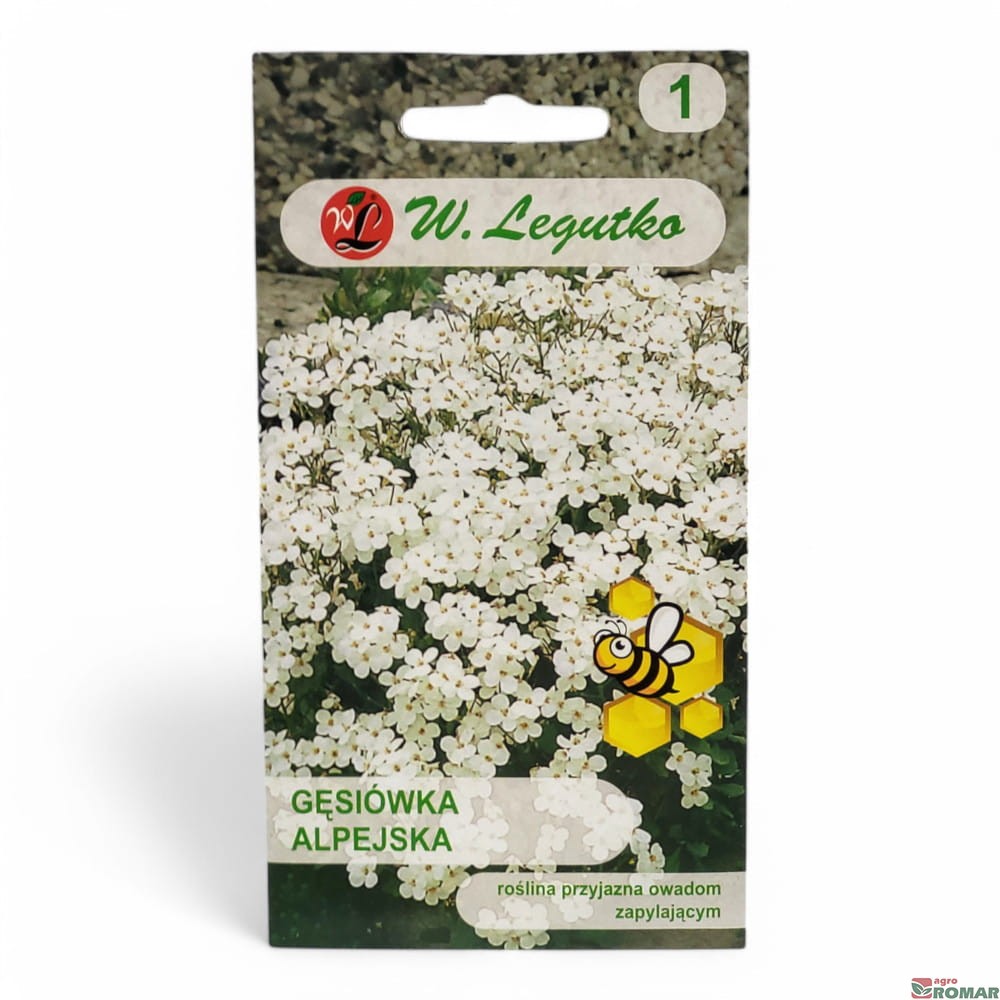 Gęsiówka alpejska (Alyssum montanum) to bylina osiągająca wysokość 15-20 cm. Wytwarza kępki pokryte licznymi, drobnymi, białymi kwiatami. Kwitnie wczesną wiosną, od kwietnia do maja. Jest idealna do obsadzania ogródków skalnych, murków oraz pojemników. Gęsiówka alpejska preferuje stanowisko słoneczne i dobrze rośnie na glebie przepuszczalnej, w miejscach o umiarkowanej wilgotności.