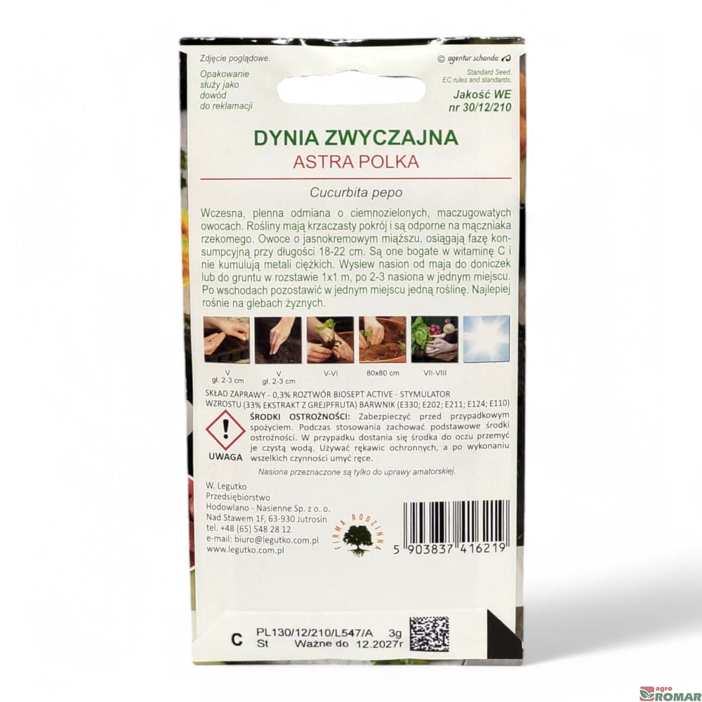 Cukinia Astra Polka 3g nasiona zaprawiane, W. Legutko