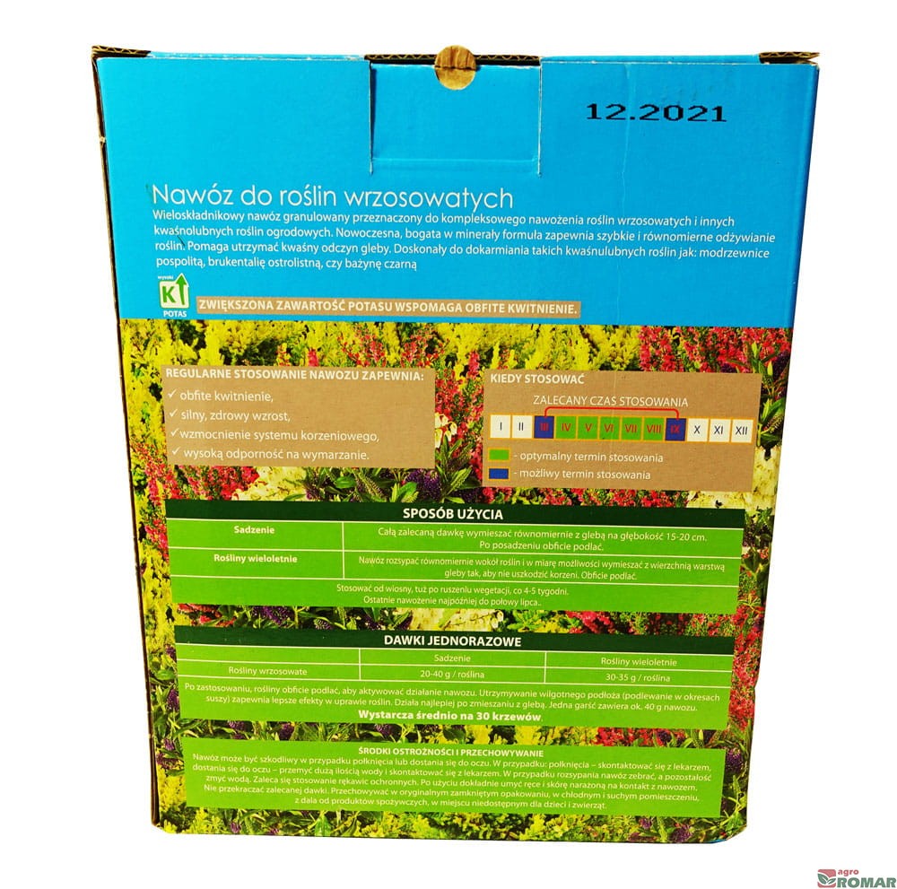 Granulowany, bogaty w minerały nawóz do roślin wrzosowatych Westland (1kg). Idealny do nawożenia kwaśnolubnych roślin takich jak: modrzewnica pospolita, brukentalia ostrolistna i bażyna czarna.