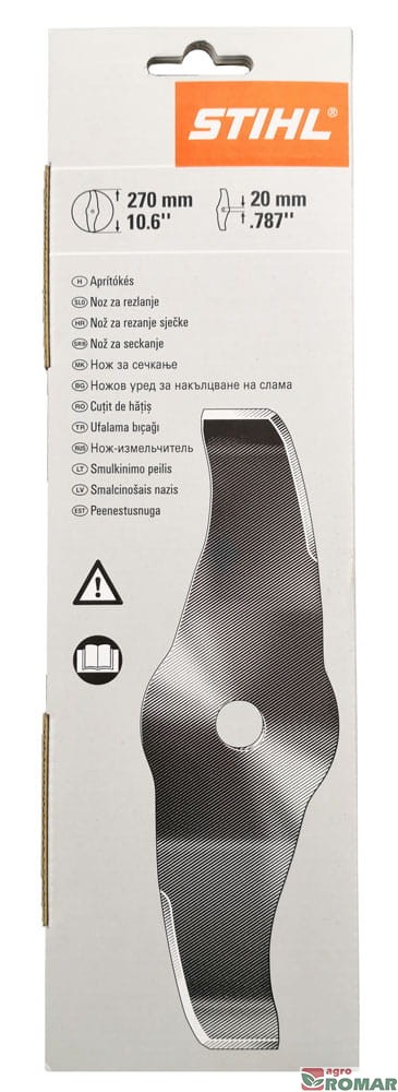 Nóż rozdrabniający do kos spalinowych STIHL. Ułatwia wycinanie trudno dostępnych zarośli, krzewów, rozdrabnia wycinany materiał. Średnica robocza 270mm, otwór montażowy 20mm.