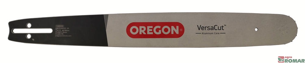 Profesjonalna prowadnica Oregon VersaCut o lekkim, aluminiowym rdzeniu, szerokim profilu i wzmocnionym kółku zwrotnicy mocowanym za pomocą 5 nitów.