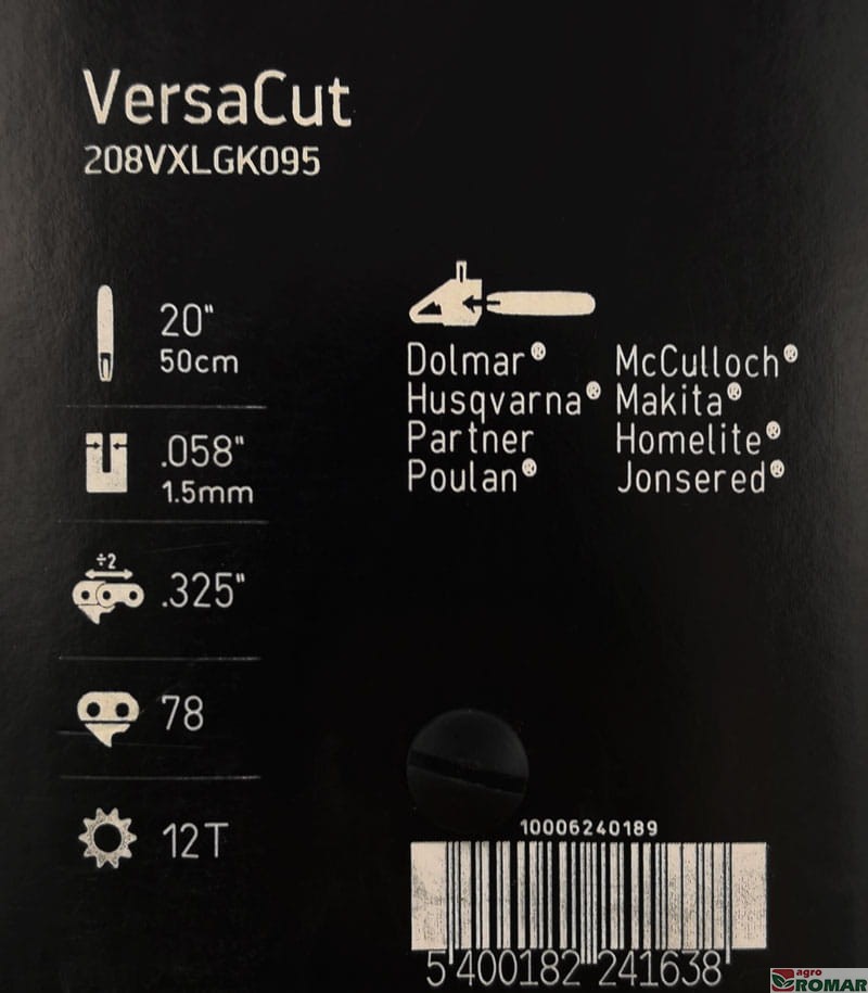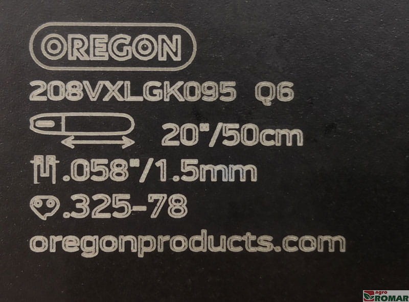 Wypalone laserowo oznaczenia prowadnicy ułatwiają jej zidentyfikowanie. Nawet po długotrwałym użytkowaniu i zdarciu wierzchniej warstwy farby pozostają łatwe do odczytania. W tabelce znajdziesz informacje o szerokości rowka, podziałce łańcucha, ilości ogniw łańcucha, oraz numerze katalogowym prowadnicy.