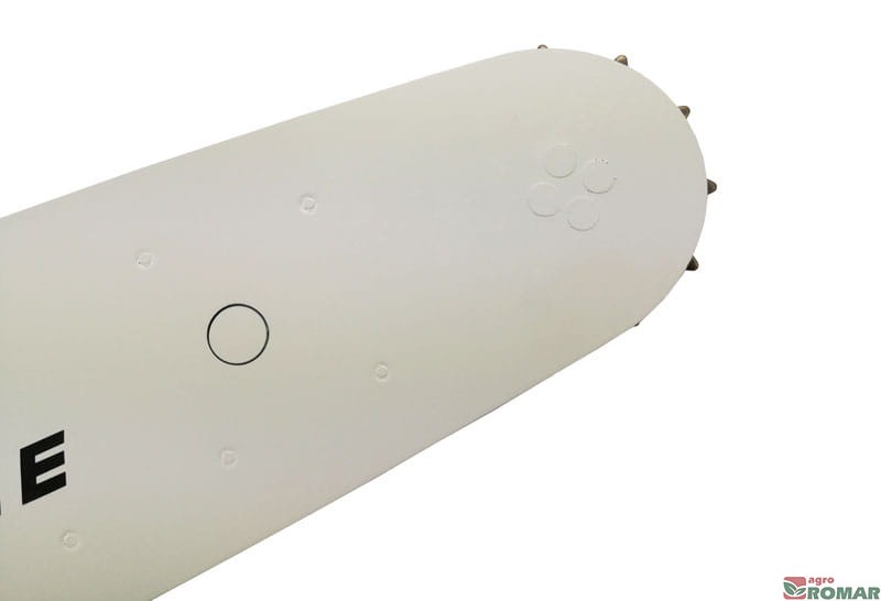 Końcówka prowadnicy wyposażona w szersze kółko zwrotnicy z 11 zębami zapewnia idealny kompromis pomiędzy trwałością i łatwym prowadzeniem w rzazie. Kółko gwiazdowe mocowane za pomocą 4 nitów.