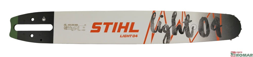Najnowsza generacja prowadnic do pilarek STIHL: Light04 o długości cięcia 35 cm. Specjalna konstrukcja o zredukowanej masie (nawet do 200g mniej niż w tradycyjnych prowadnicach STIHL) cechuje się lepszym wyważeniem maszyny, zmniejszeniem obciążenia silnika, zwiększeniem wydajności cięcia oraz łatwości manewrowania pilarką podczas pracy. Nowy kształt prowadnicy znacząco poprawił prowadzenie w rzazie oraz łatwość wcinania.