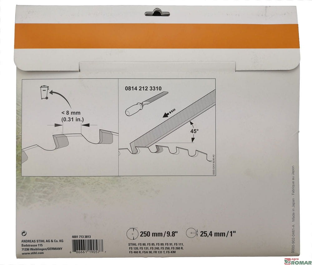 Oraz innymi modelami kos STIHL i innych producentów, w których dopuszcza się montaż metalowych tarcz tnących o średnicy 250mm, wyposażonych w otwór montażowy 25,4mm.