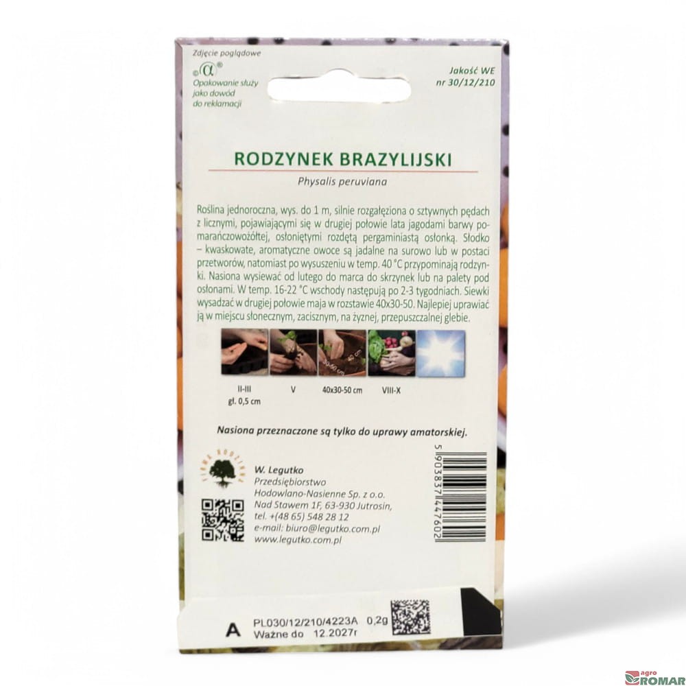 Rodzaj produktu: Nasiona Rodzynek brazylijski (Miechunka peruwiańska) 0.20g, W. Legutko